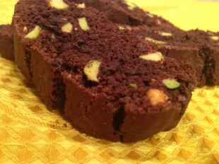 Intr- un castron mare, se mixeaza untul si zaharul impreuna pana cand capata culoarea bej si compozitia devine pufoasa. Se adauga cate un ou treptat. Apoi se cerne faina impreuna cu pudra de cacao si cu bicarbonatul de sodiu si se incorporeaza in compozitie cu grija. Se adauga si fisticul impreuna cu fulgii de ciocolata.